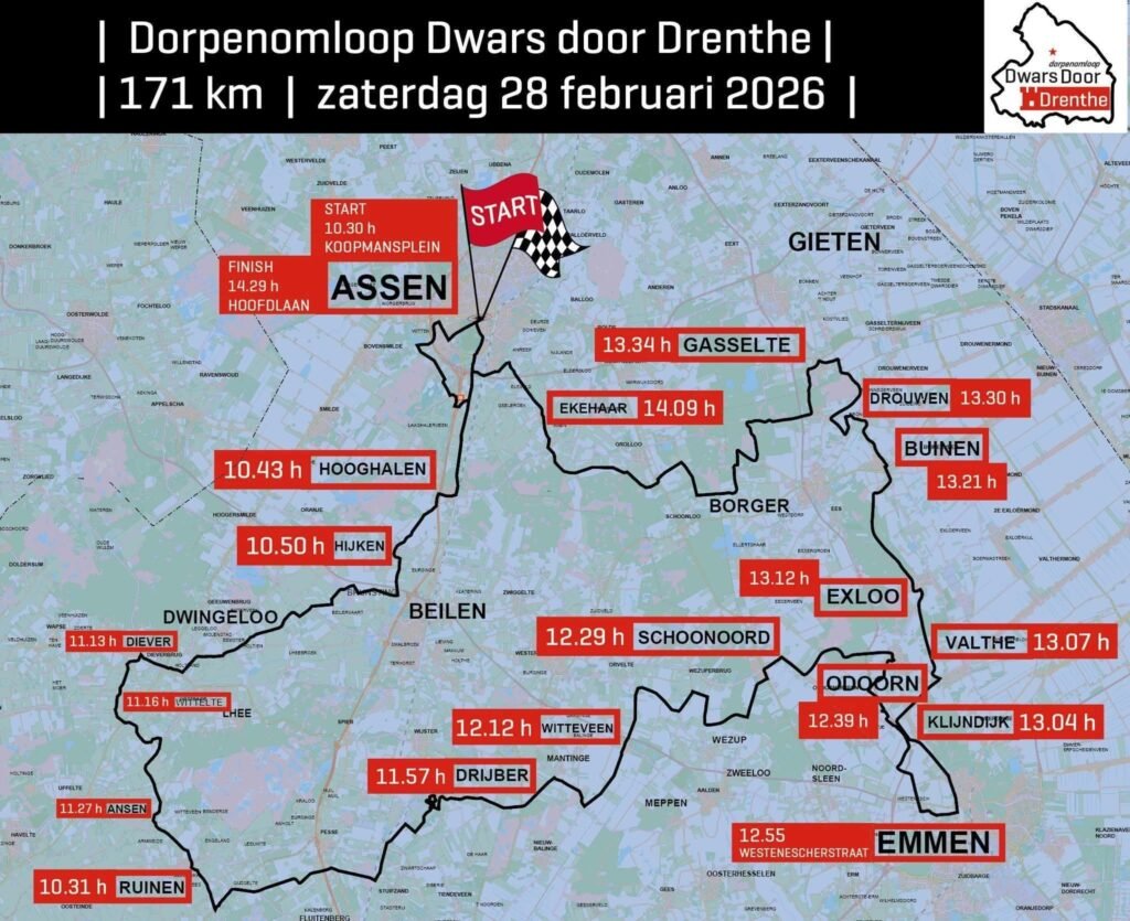 In Assen was de start en de finish van wat ook wel bekend staat als de “Dorpenomloop Dwars door Drenthe.” De wedstrijd geldt als de traditionele opening van het Nederlandse wielerseizoen en brengt veel renners uit heel Nederland (en soms daarbuiten) samen in Drenthe.