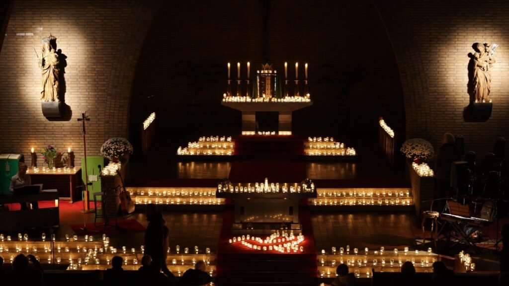 Meer dan zesduizend waxinelichtjes geven de Jozefkerk en de Mariakerk in Assen op vrijdag 7 november weer een romantische sfeer.